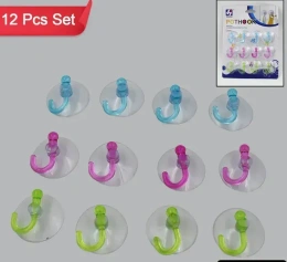 The 12PCS Suction Wall Hooks feature transparent rubber vacuum suction cups, providing a strong and reliable hold without the need for drilling. These hooks are perfect for hanging items such as towels, kitchen utensils, or decorations on smooth surfaces like tiles, glass, or mirrors. The 12-piece set ensures ample hooks for various uses, and their easy-to-install design makes them a convenient and damage-free solution for organizing your space.