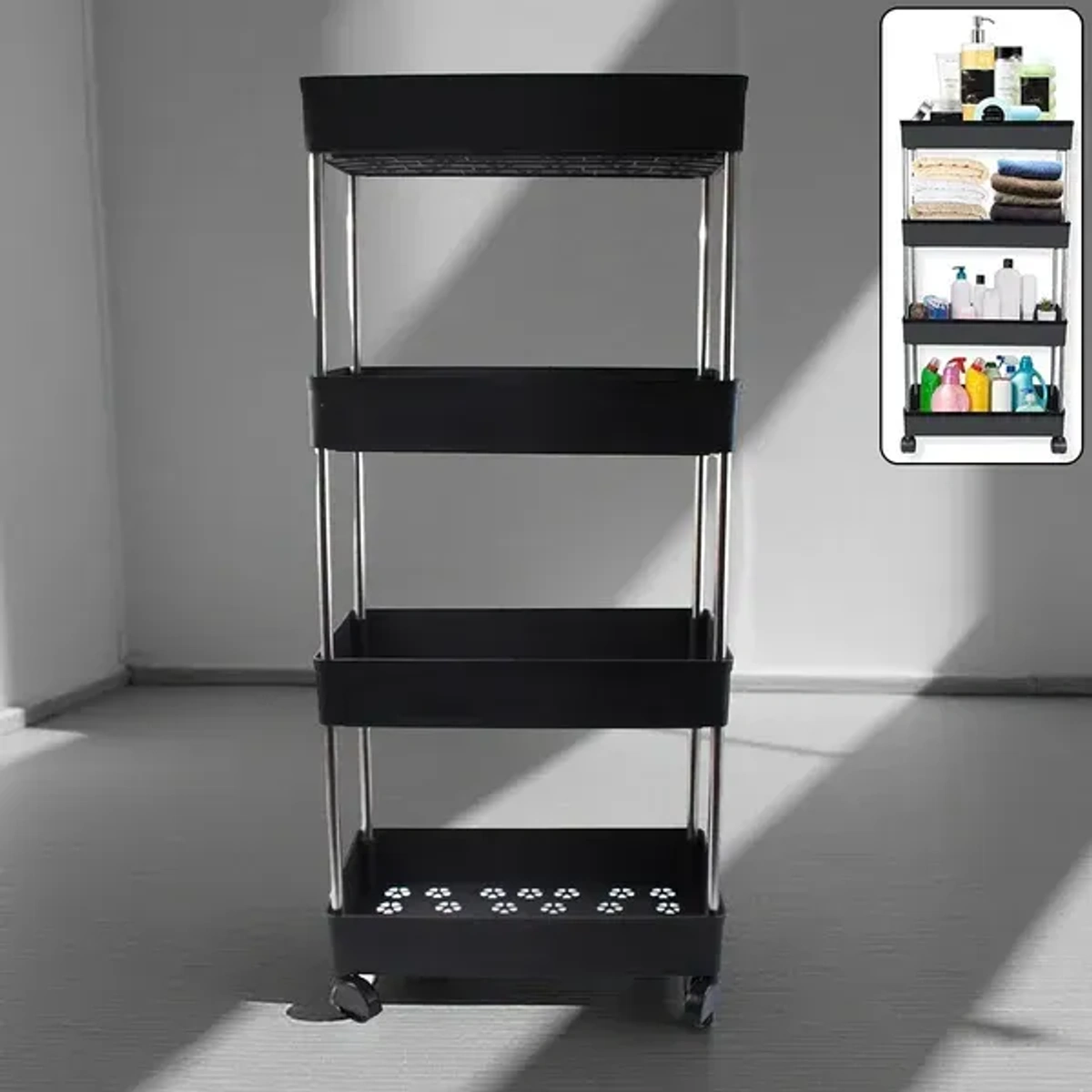 Transform Your Space with the 4-Layer Multi-Purpose Movable Storage Rack