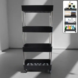 Say goodbye to clutter and hello to smart organization with this 4-layer movable storage rack. Perfect for your kitchen, bathroom, laundry area, or any corner of your home, this versatile storage solution is designed to make your life easier. Crafted from heavy-duty plastic, it combines durability with functionality, ensuring you can store everything from jars and toiletries to vegetables and cleaning supplies effortlessly.