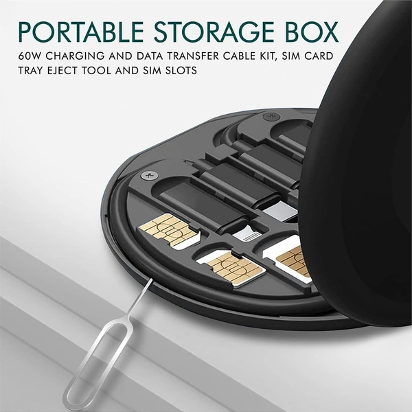 5IN1 DATA CABLE, All in One 60W USB Type C to C Fast Charging Travel Data Cable Set Micro USB and Lightning Port adapter kit with Inbuilt Phone Stand(1359)