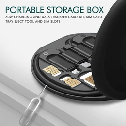 Stay powered and connected on the go with this versatile 5-in-1 USB data cable kit. Featuring a high-speed 60W USB Type-C to Type-C cable, it includes interchangeable Lightning and Micro USB adapters to charge almost any device. Designed for convenience, the compact kit also doubles as a phone stand—perfect for travel, work, or daily use. All-in-one functionality meets portability in this must-have tech accessory.