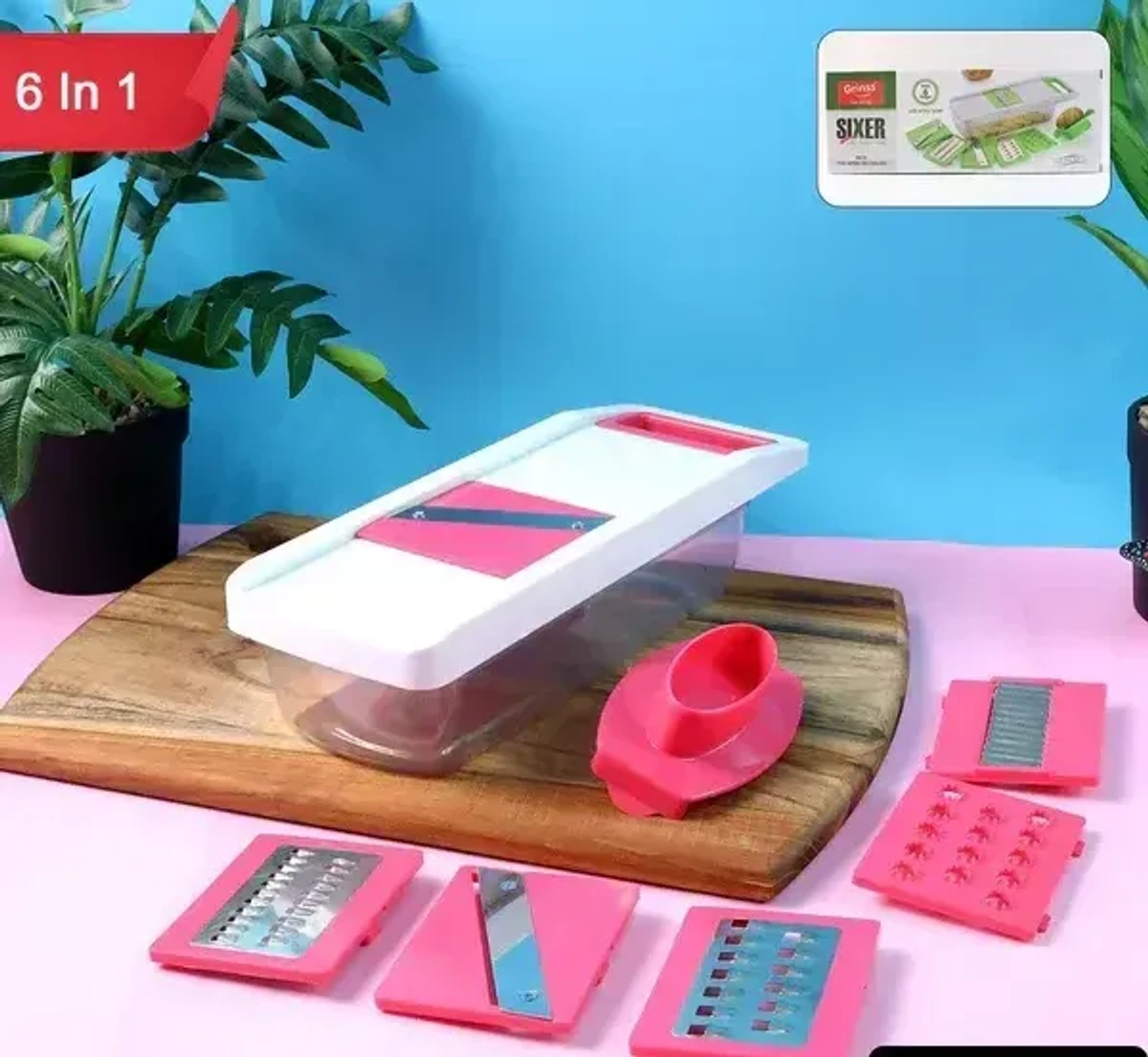 6IN1 VEG. SLICER, 6-in-1 Vegetable Slicer, Grater & Chopper Set with Storage Box | Stainless Steel Blades, Safety Hand Guard & Anti-Slip Base(2673)