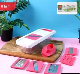 Simplify your meal prep with this 6-in-1 Vegetable Slicer, Grater & Chopper Set, featuring interchangeable stainless steel blades for slicing, grating, and chopping vegetables with precision. Designed with a safety hand guard, anti-slip base, and built-in storage container, it ensures clean, fast, and safe food preparation. Perfect for making salads, raita, stir-fries, and garnishes, this compact kitchen tool combines efficiency, safety, and convenience for everyday cooking.