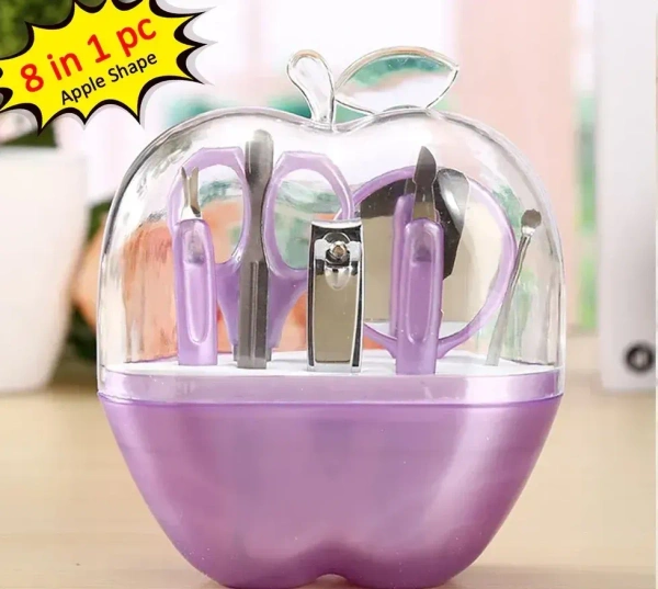 8PCS Apple Nail Art Set – Compact Stainless Steel 8-in-1 Manicure & Pedicure Kit