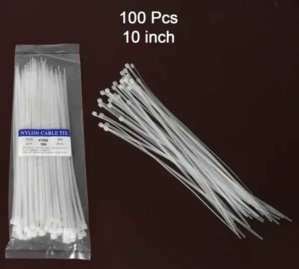 CABLE TIE 10INCH, Nylon Cable Zip Ties 100pcs – 10 Inch (4x250mm) White Heavy-Duty Self-Locking Wire Organizer for Home, Office & Industrial Use(2494)