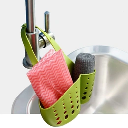 The FAUCET CADDY is a versatile silicone organizer designed to hang on sink faucets for convenient storage of soap, sponges, and scrubbers. Featuring draining holes, it prevents water buildup, keeping items dry and hygienic. Ideal for bathrooms and kitchens, this durable, flexible, and easy-to-clean caddy ensures a clutter-free and organized sink area.