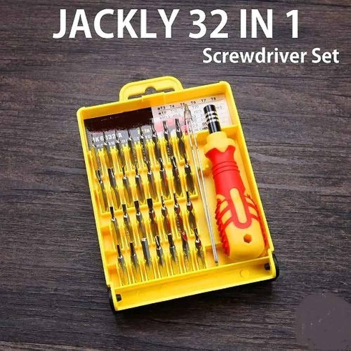The JACKLY JK 6032 is a versatile precision screwdriver set designed for repairing electronics, gadgets, and household items. Featuring multiple interchangeable bits and an ergonomic handle, it ensures easy and efficient repairs. Ideal for professionals and DIY enthusiasts alike.