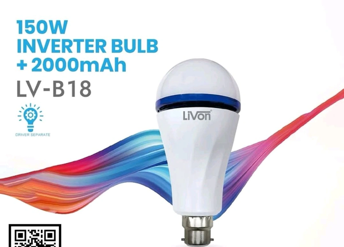 LIVON Inverter LED Bulb with built-in 2000mAh rechargeable battery provides bright light during power cuts with up to 4 hours backup. Energy-efficient, long-lasting, and easy to use, this emergency LED bulb is perfect for homes, offices, and shops.