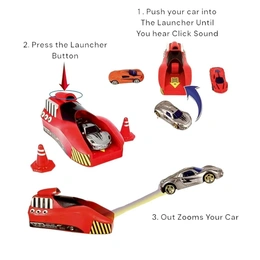 - High-Speed Action: The spring-loaded launcher propels your car forward for exhilarating races and stunts.
