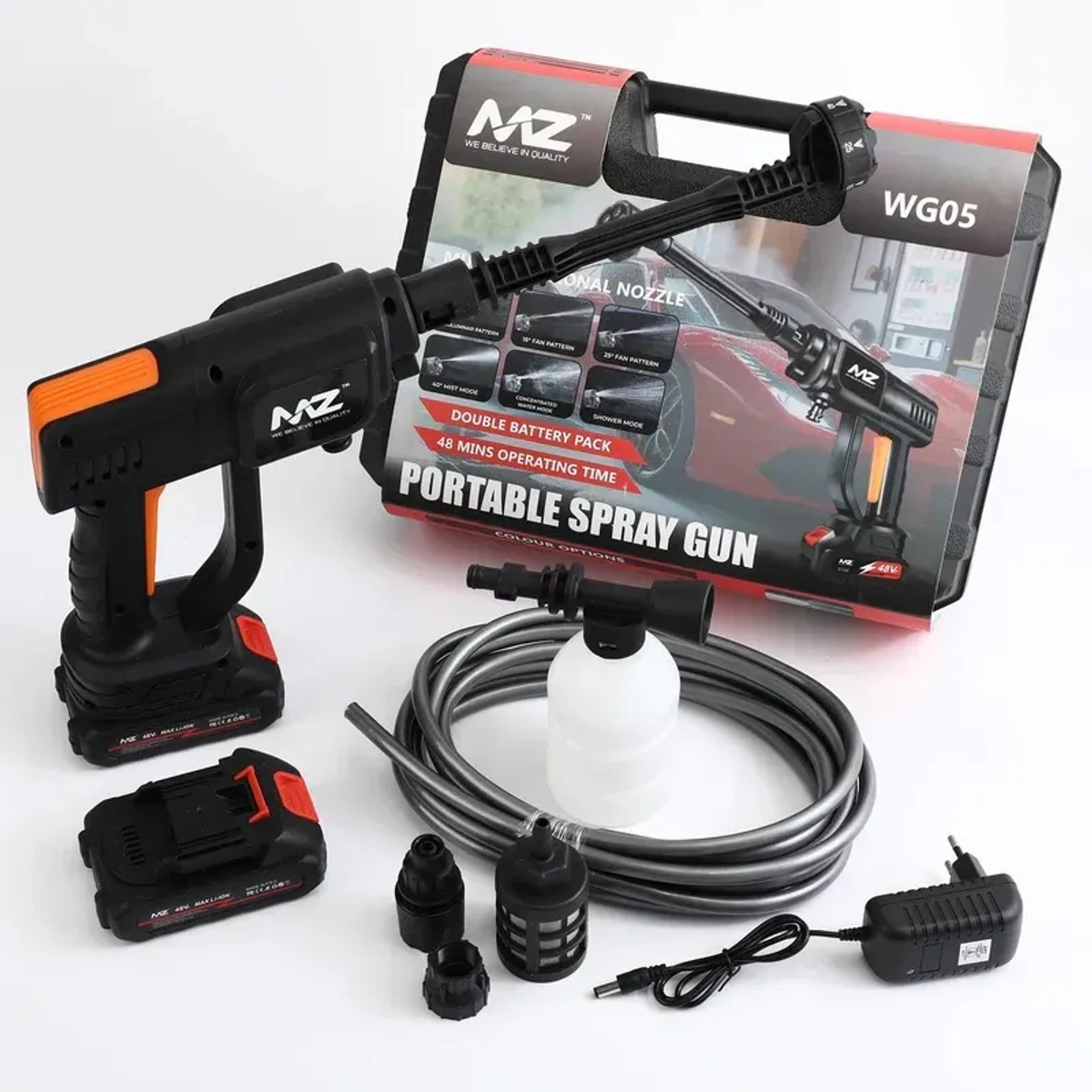 The MZ Portable High Pressure Washer Gun is a powerful and convenient cordless cleaning solution designed for car, bike, home, and outdoor use. Equipped with a heavy-duty 18.5V dual battery system, this high-pressure washer delivers strong water flow for effective cleaning anytime, anywhere. Its lightweight and portable design makes it easy to carry and use without the hassle of wires. Perfect for washing vehicles, watering plants, cleaning floors, walls, and more, this multi-purpose washer gun is a must-have tool for every home.