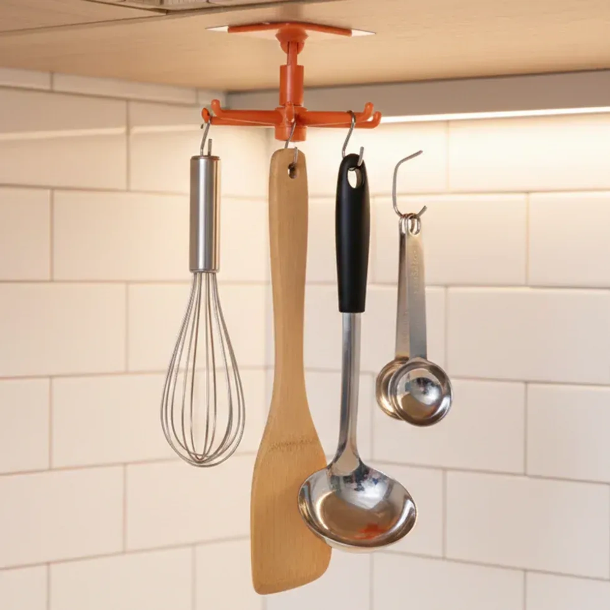 ROTATABLE HOOK, 360° Rotating Wall Mounted Kitchen Utensils Hook Stand – Multi Hook Organizer for Spoons, Spatula, Keys & Kitchen Tools (Orange, 1 Pc)(118)