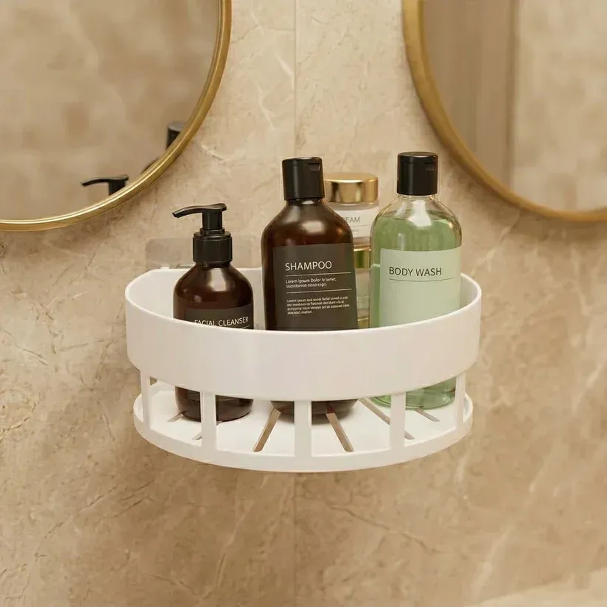 Maximize your space with this self-adhesive corner bathroom shelf designed for easy, no-drill installation. Made from durable, water-resistant plastic, it features fast-drain holes to prevent water buildup and keep your essentials dry and hygienic. Perfect for storing toiletries, shampoo bottles, kitchen items, and daily accessories, this space-saving corner rack fits seamlessly into bathrooms, kitchens, and utility areas. Its strong adhesive ensures a firm hold on smooth surfaces, offering a convenient and clutter-free storage solution for any home.