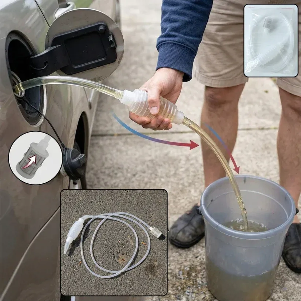 Whether you're refueling your car, maintaining your motorcycle, cleaning your aquarium, or tending to your garden, this lightweight and portable pump is the practical solution you’ve been looking for. No need for electricity—simply squeeze and let this hand-operated pump do the work for you!