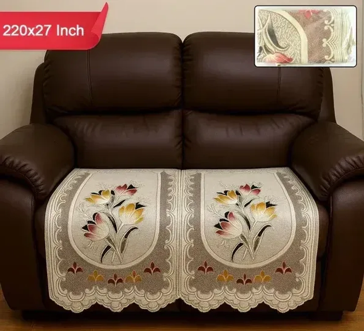 Enhance your living room décor with this Floral Sofa Protector Runner (220x27 Inch). Designed with a beautiful floral pattern, it protects your sofa from dust, spills, and wear while adding a stylish touch. Made from soft, durable, and washable fabric, this sofa runner ensures comfort and easy maintenance. Perfect for daily use on 3-seater or long sofas.