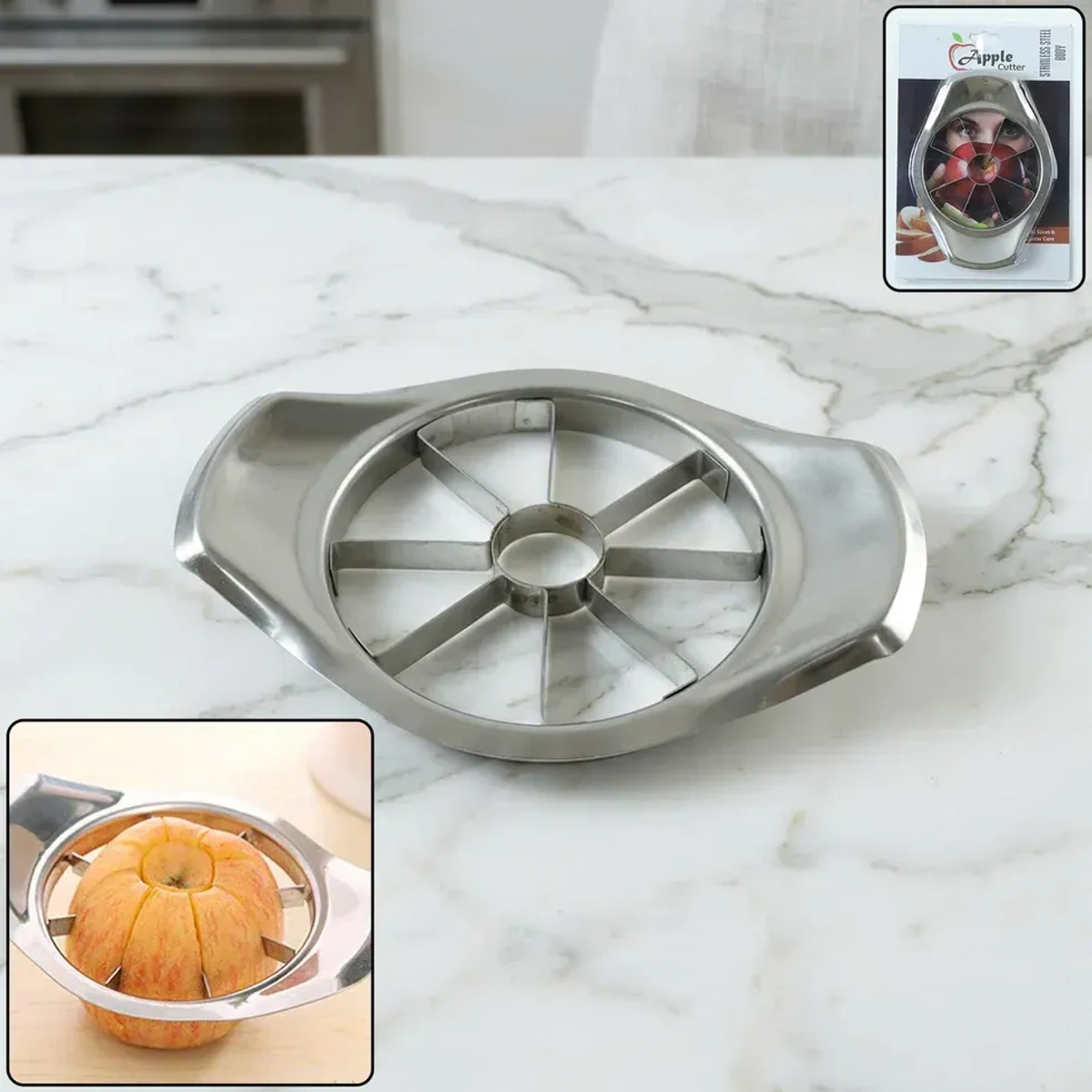 APPLE CUTTER STEEL, Heavy Duty Stainless Steel Apple Cutter & Slicer with Core Remover | Multipurpose Fruit Divider Tool (1 Pc)(116)