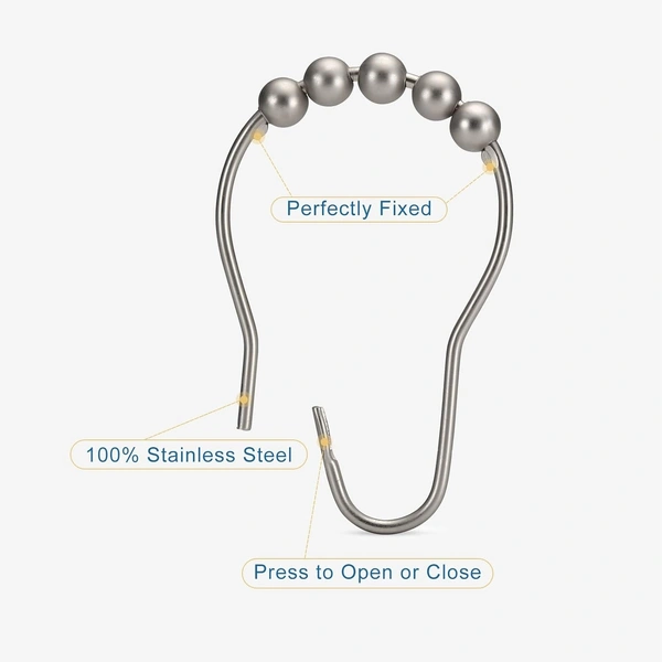 Upgrade your bathroom with Stainless Steel Shower Curtain Hooks Rings designed for smooth and silent use. Made from high-quality rustproof stainless steel, these roller gliding shower hooks slide effortlessly on the shower rod without snagging. Strong and durable, they securely hold shower curtains and liners while resisting corrosion in humid environments. Easy to install and compatible with standard shower rods, this set of 12 shower curtain rings is perfect for bathrooms, hotels, and guest washrooms.